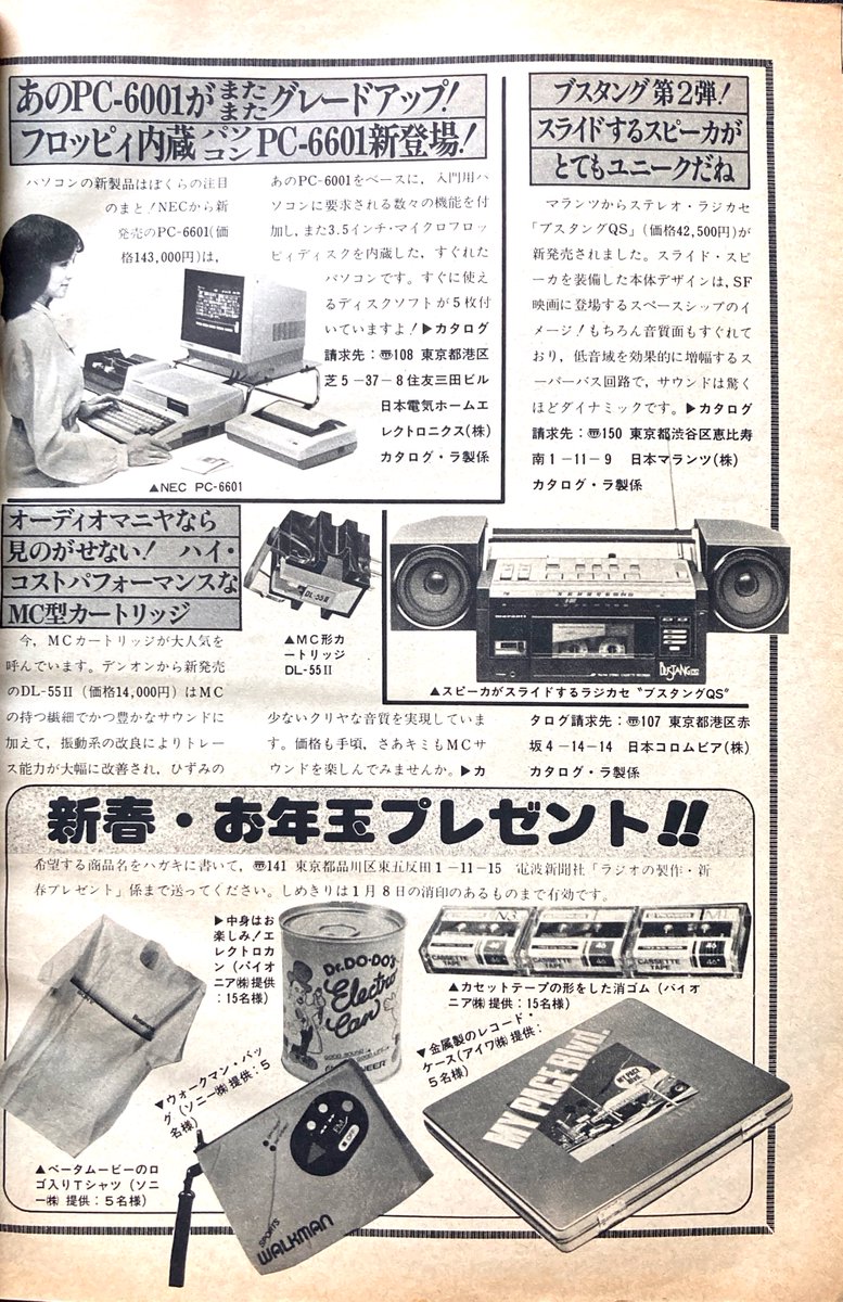 Some cool equipment from 1984, by then Marantz was back to Marantz, no UNIX with the Bustang Model. There's even some swag at the end, the one looks like a money bag that looks like a Sports Walkman.