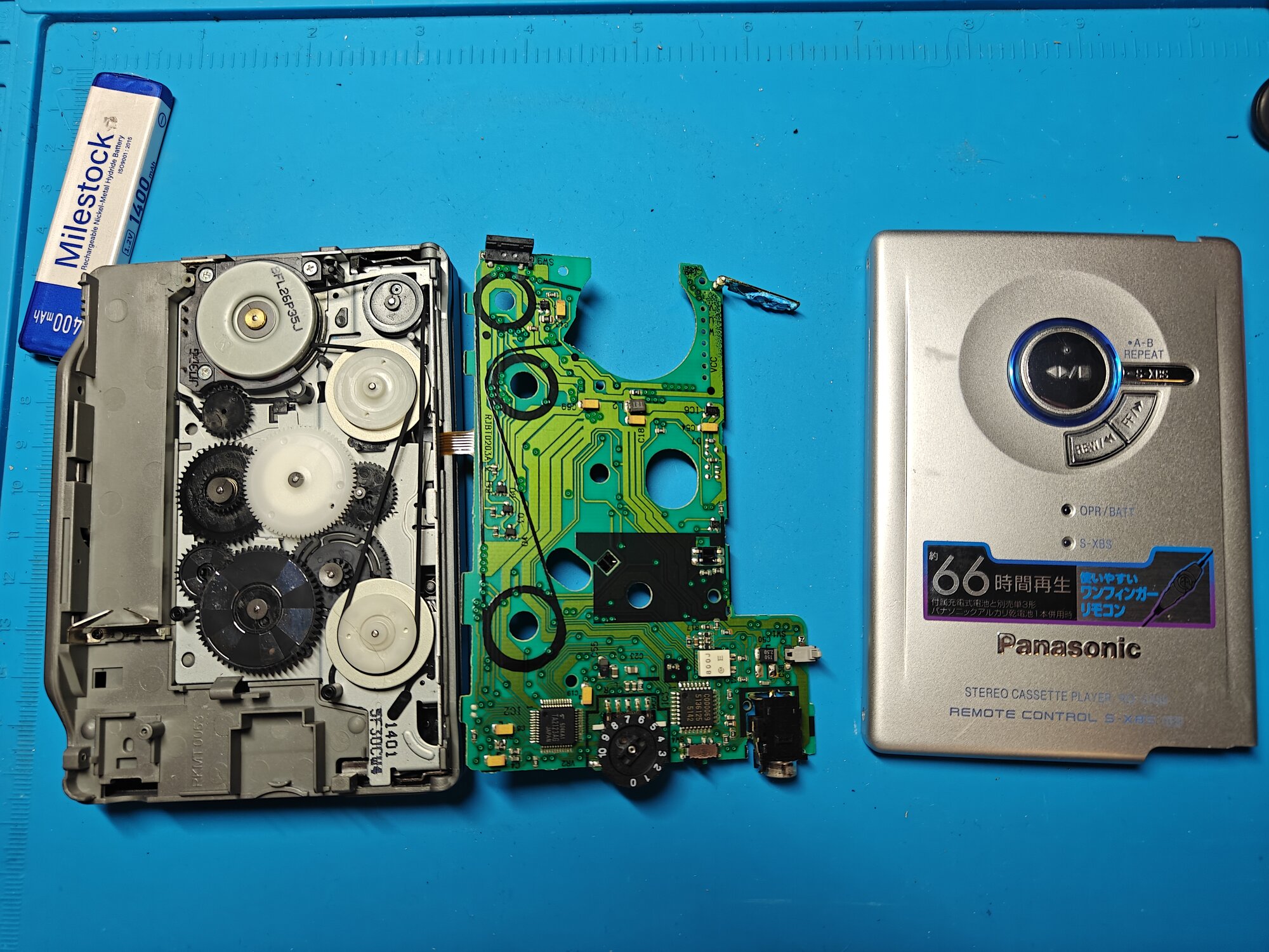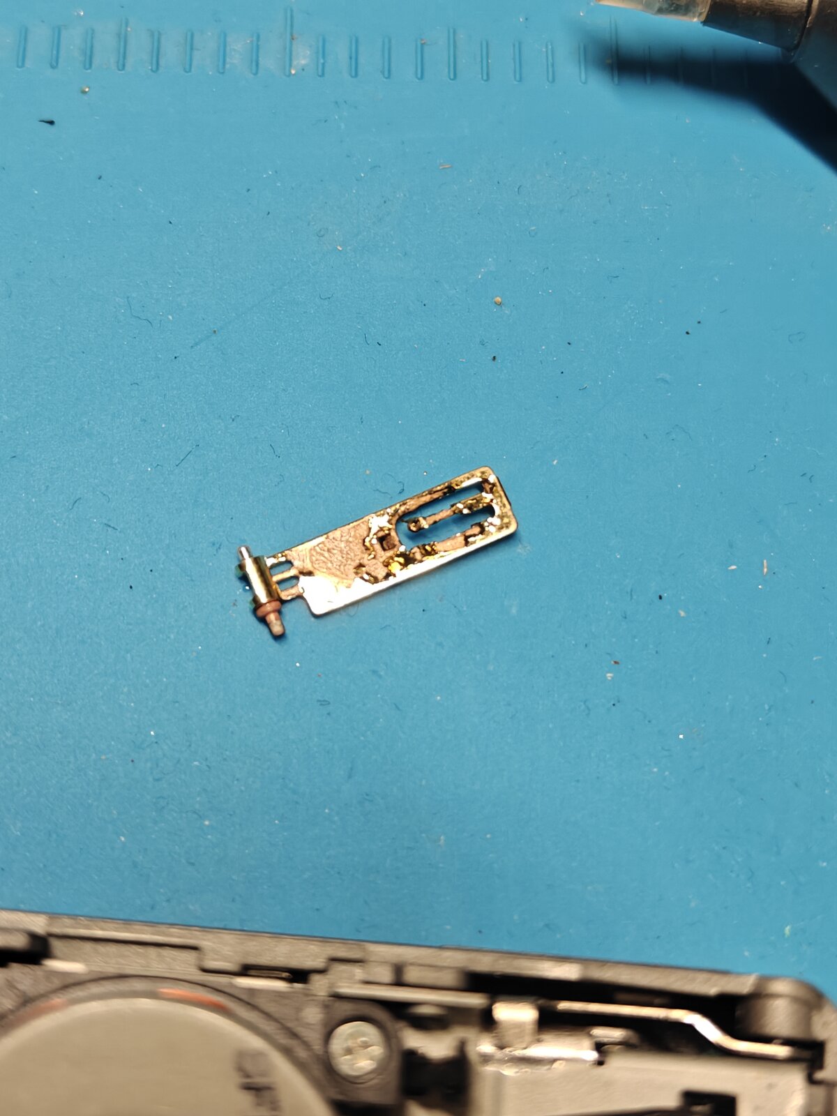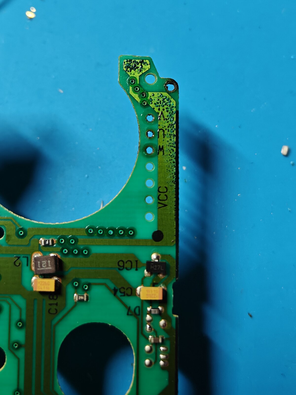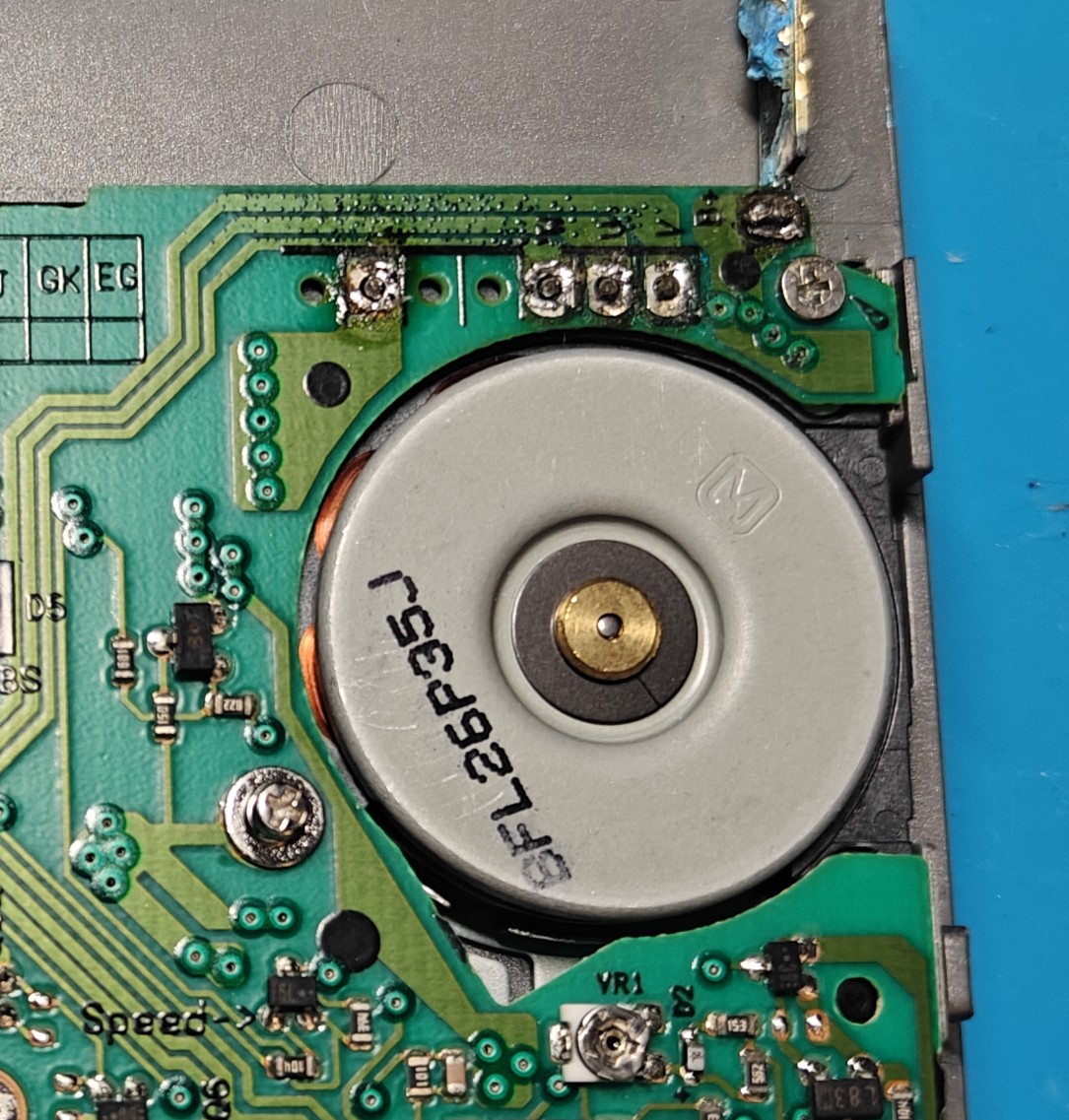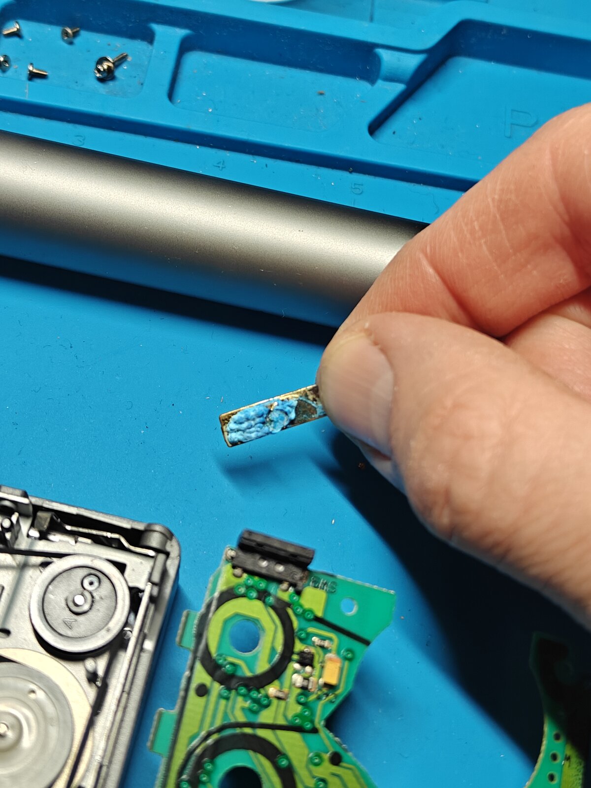 I was hoping to not make this thread. this unit had a gumstick in it when I received it, and probably for a long time. The positive battery terminal was badly corroded and the battery door was difficult to open. After cleaning the corrosion, I cleaned the pulleys, lubricated the motor, and reassembled for testing, but the unit does not respond. some of the plating came off the + terminal, but continuity is fine. I've got supply voltage across the solder joints for the + and - from the gumstick. Voltages on IC1 are all wrong. I also have continuity between W, U, and V pins on the motor, all with supply voltage on them, which I think is not correct. Furthermore, it looks like the corrosion has affected the traces around where the + terminal connects to the PCB, and the traces going to the motor pins. Pics below Is it worth removing some solder mask over those traces and trying to repair them? Is there any hope for this unit?