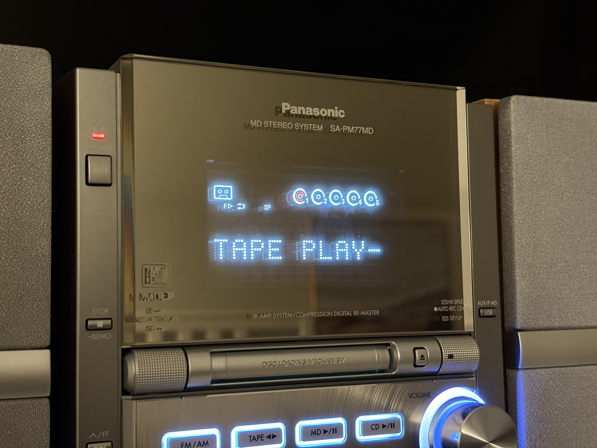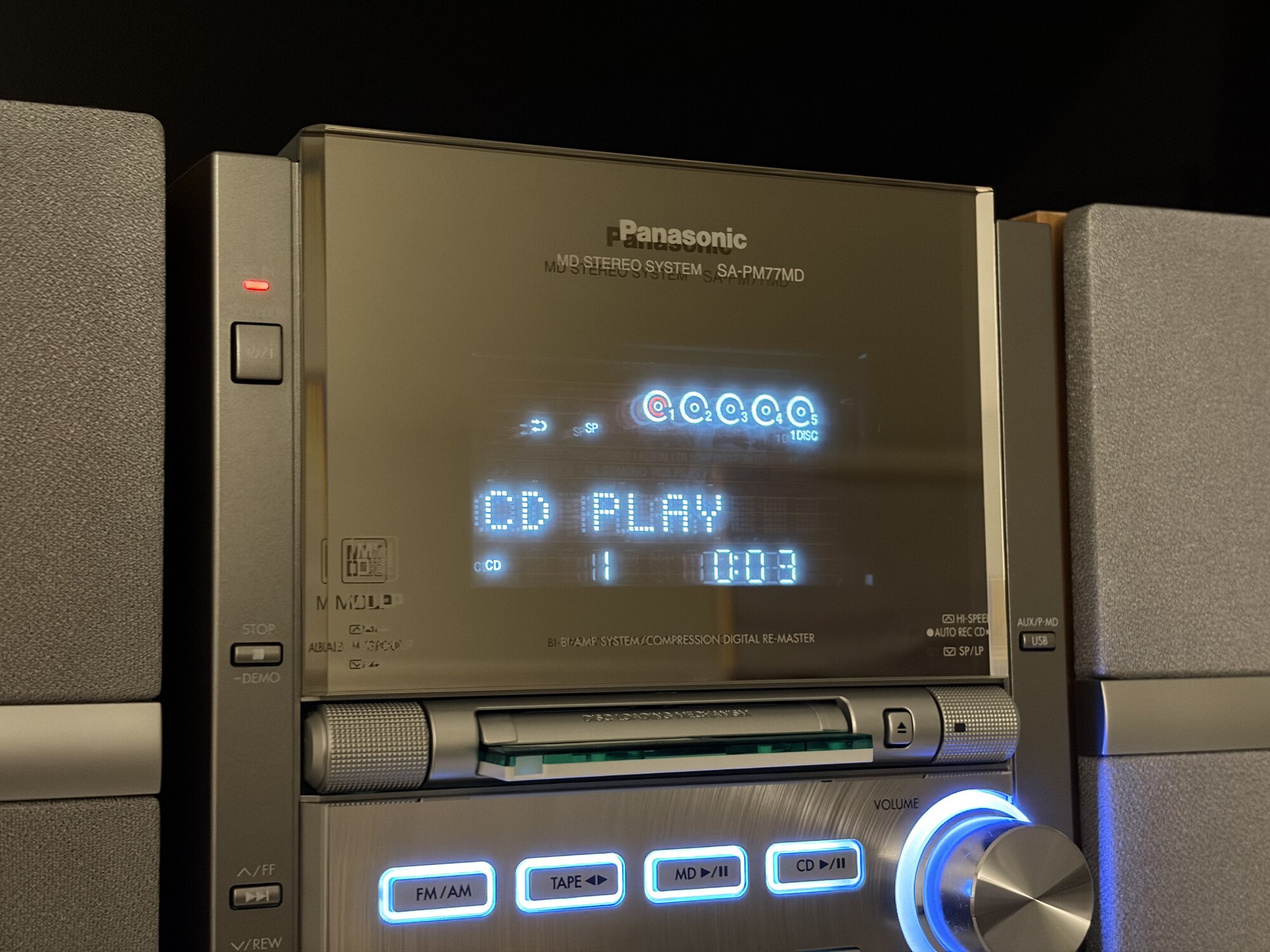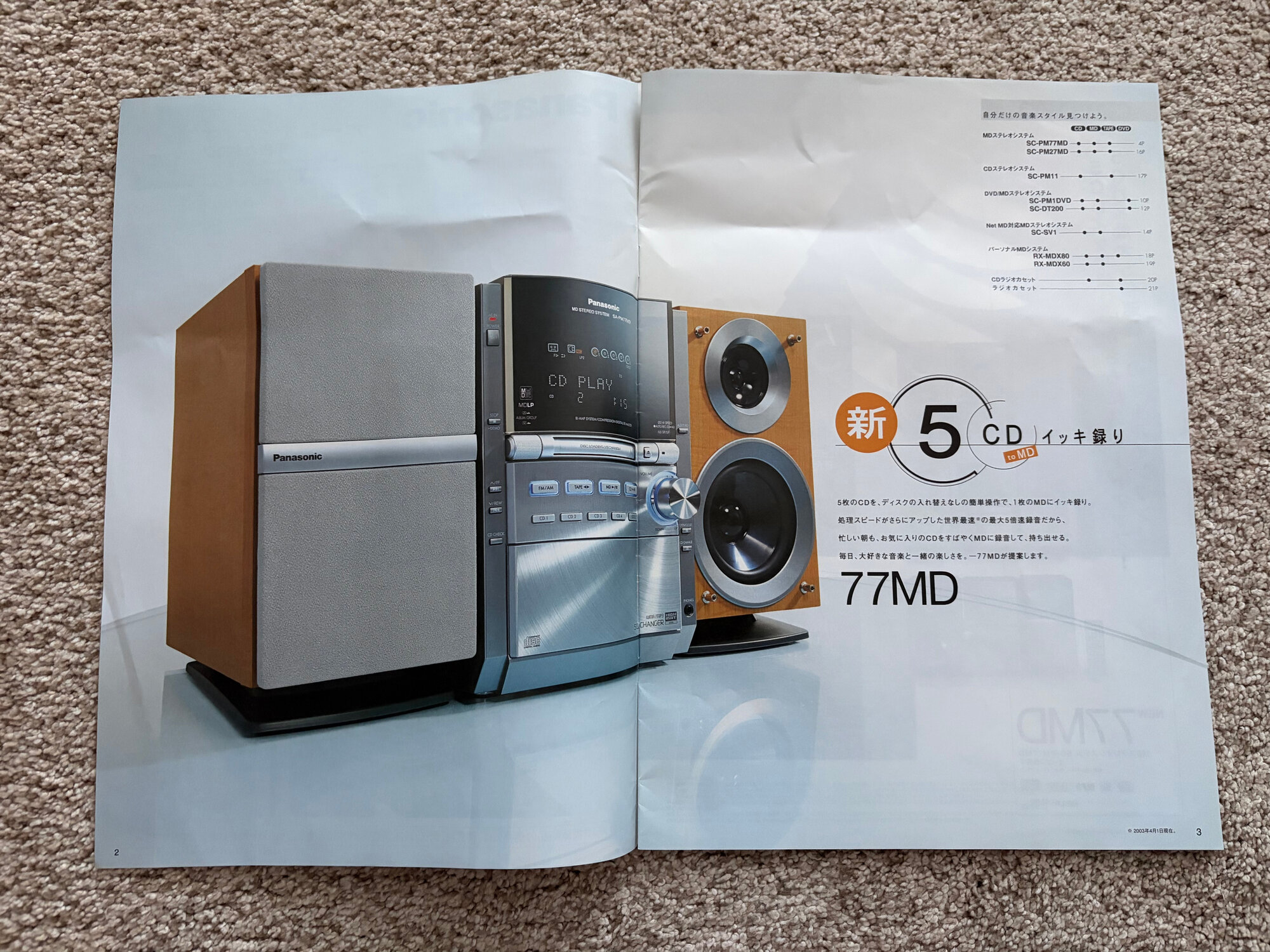 Even after all of the Sony Pepz, Qbric, and Pixi systems I've seen, this Panasonic SC-PM77MD released in 2003 may just take the cake for the very best mini systems I've ever handled and listened to. It has great sound, fantastic build quality, and all of the features you could possibly name. It's also insanely practical compared to some of the more weird Sony concepts released around the same time. This system was sadly a Japan market only product... not released in the US or Europe... but I will say similar looking units made their way to the US from Panasonic that didn't have the MD drive. I bought mine new old stock from Japan Mercari, so it arrived sealed and untouched inside.