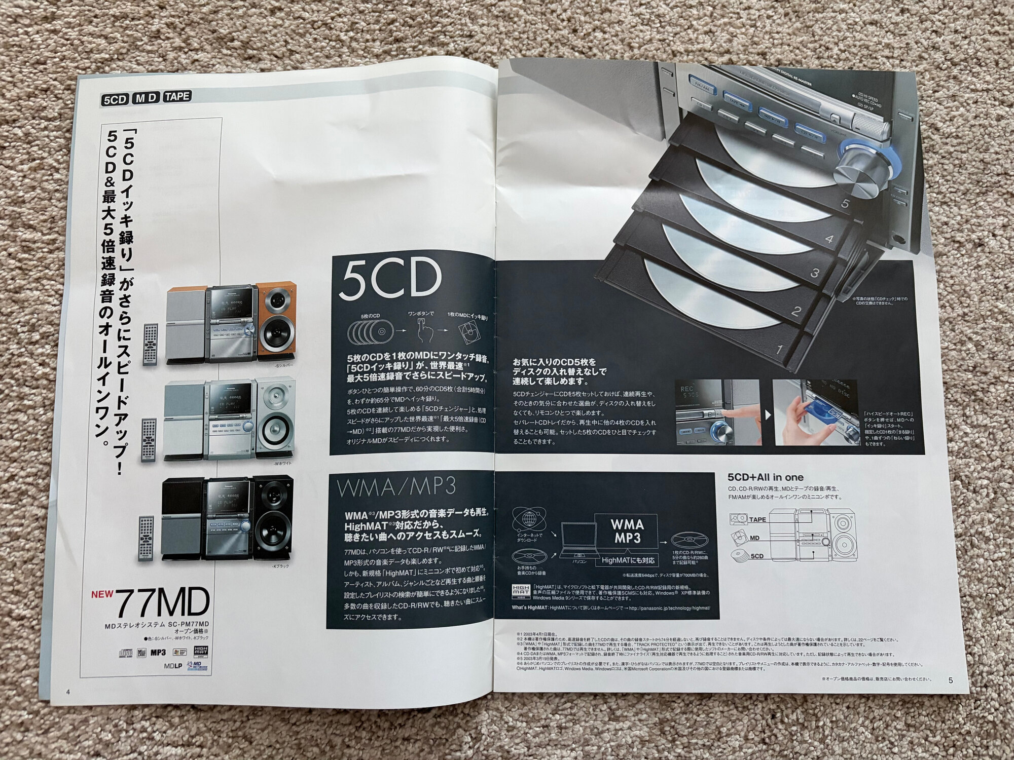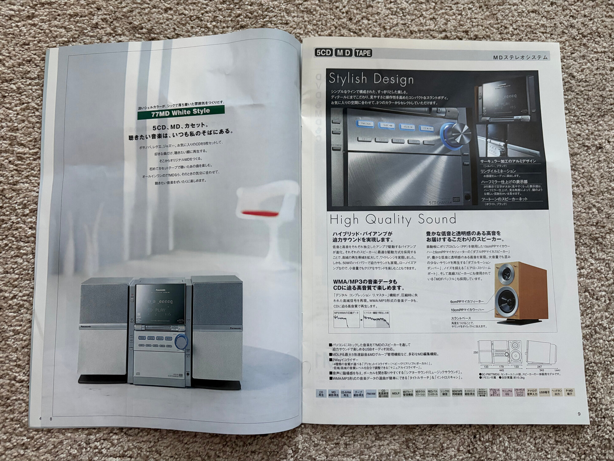 I guess it should come at no surprise that the build quality is exceptional, as this was Panasonic's flagship model for 2003 in this category. Based on the print ads and catalogue shown above, they were very proud of this product, and marketed it quite hard in Japan. I just love the hero shots shown here, and I have to say, that white model is looking particularly clean and fresh. I can't imagine this product was seen as a cutting edge device, and I'd also believe that this product category was rapidly shrinking by this point. I know from experience that Sony's compact systems from this time period were not marketed with this amount of attention to detail, nor were they particularly well made or nice to look at. So way to go Panasonic for making something so beautiful and high-quality at a time when it wasn't as easy or as profitable to do so.