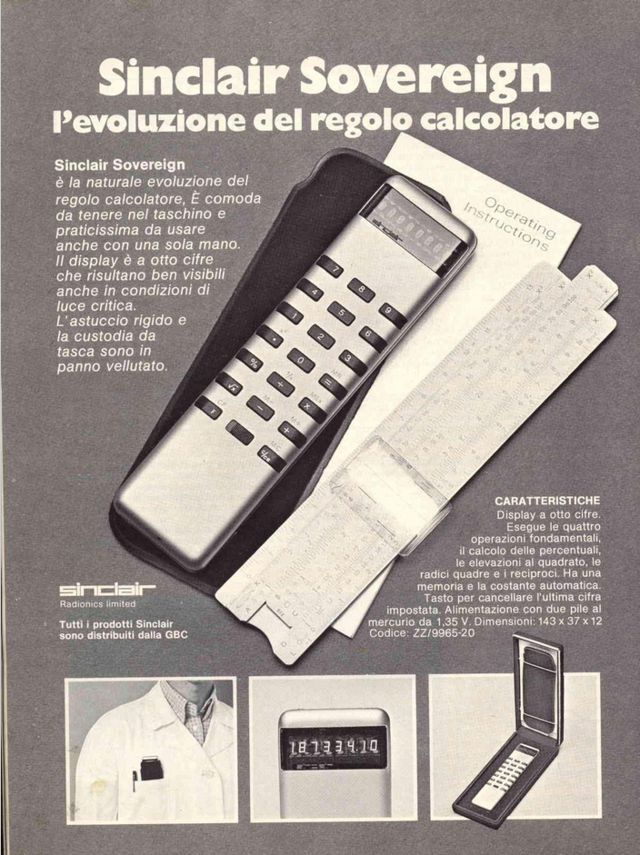 Just found this ad for a very odd Sinclair Calculator, the Sovereign from 1976, anybody see or own one of these? Sinclair had the best marketing department, the logo, the design, the case, it all presents very nicely.