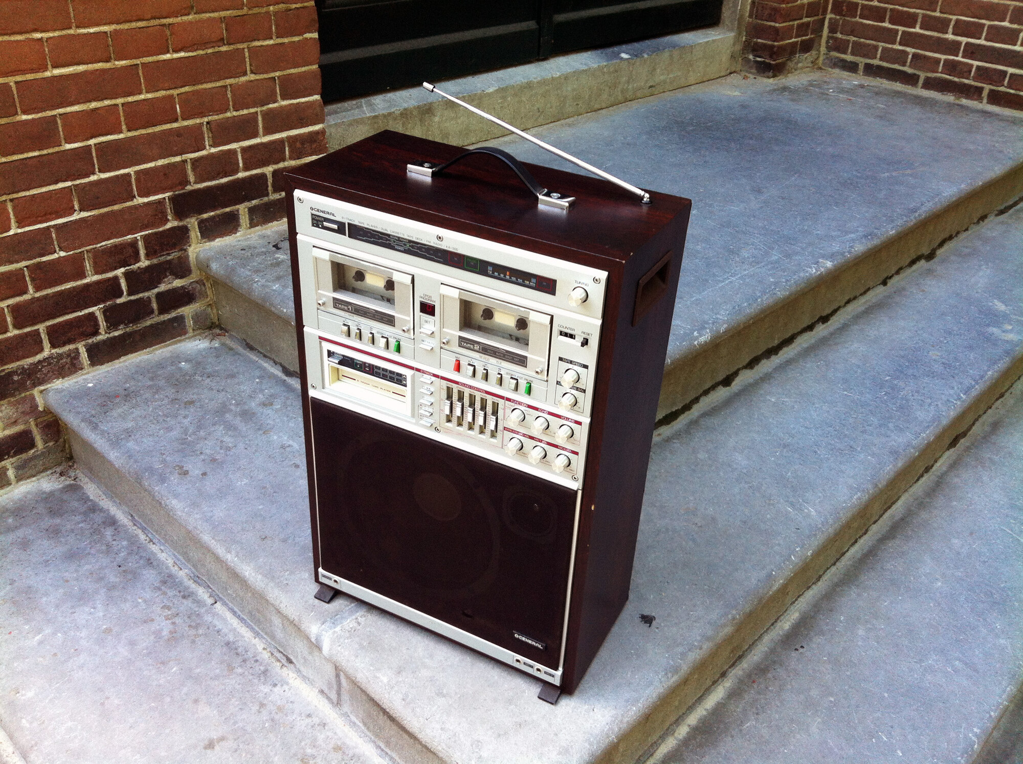 I'm pretty sure that's related to Fujitsu 10, they also had a small line of General Boomboxes. Pretty neat, that one looks well done with wood and metal, some of them can be pretty ugly.