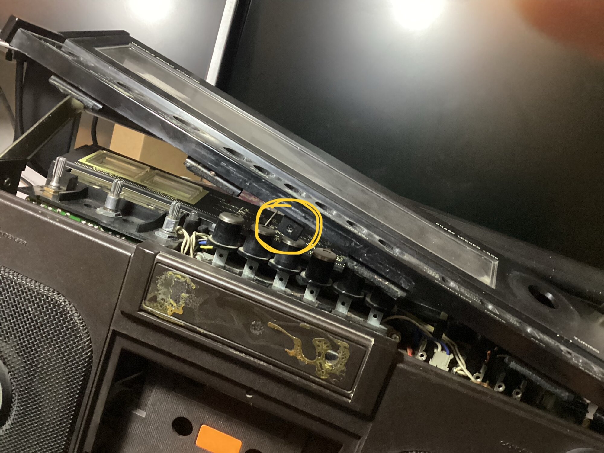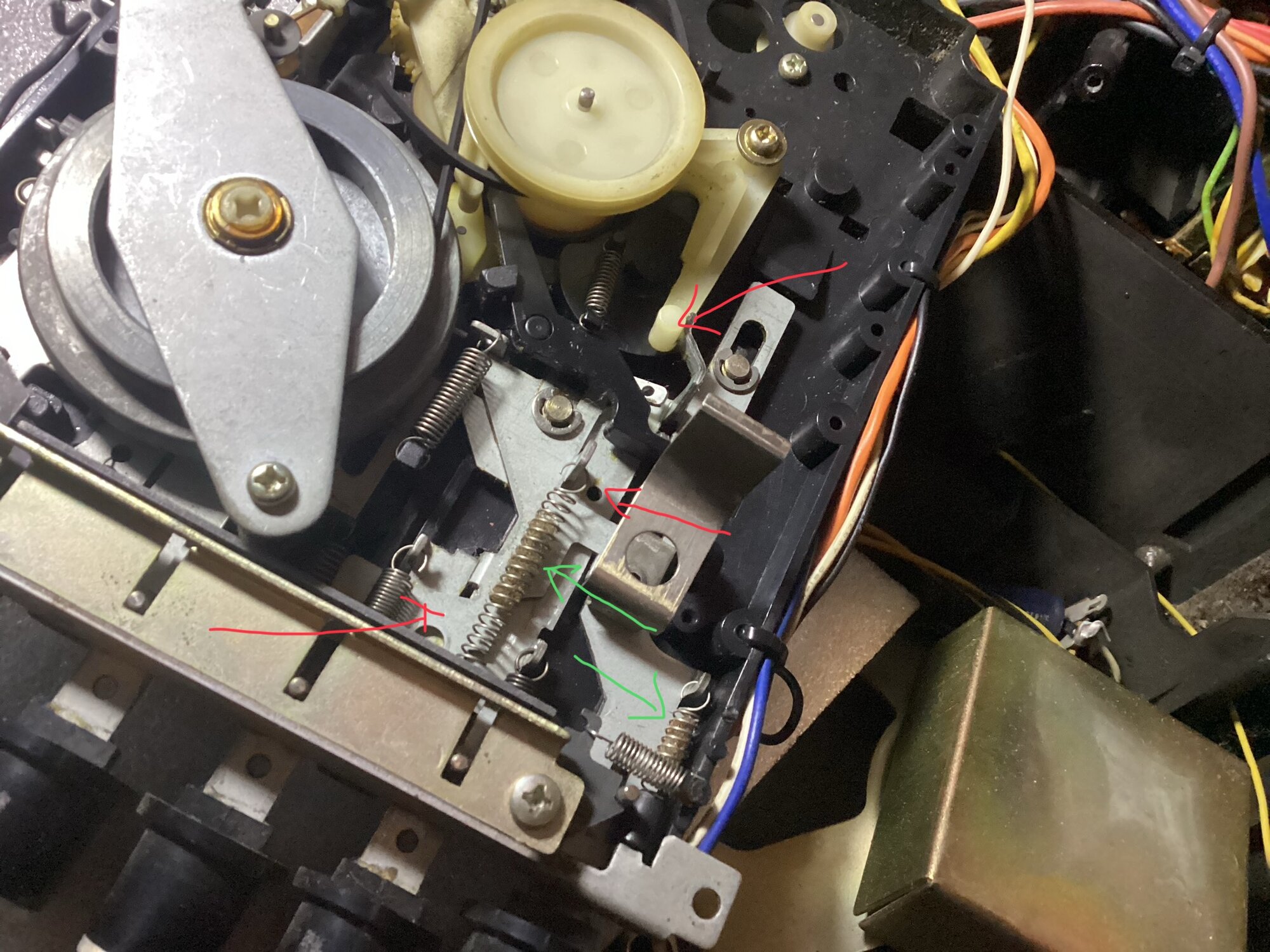 - Cassette deck section and mech all keys acting ( a slightly impeded), tape playing nice, left channel ok, right channel , the VU is full scale while the speaker very loud hum. @Mister X drove me in gently hit the REC button to test for possibly oxidized contacts: TRUE!