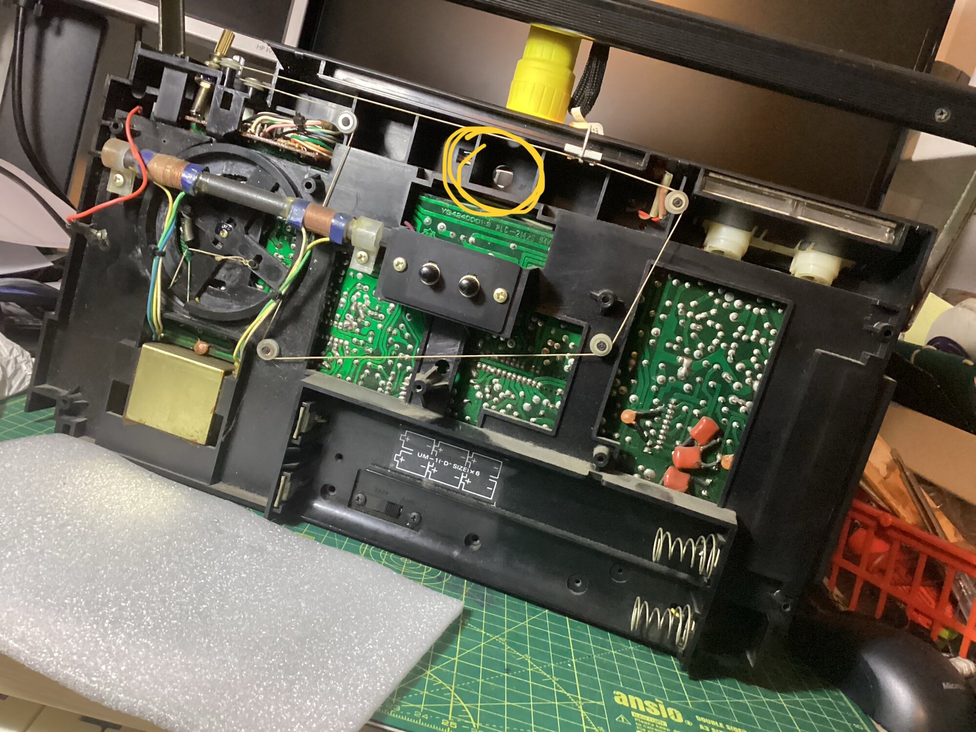 There’s only a little uhm from speakers, i’m suspecting of a loop ground: unusually the mech chassis is grounded by 2 distinct cables, or maybe some failing capacitors. I’ll investigate it in a future (probably while i’ll go service the idler tyre), but for the day i’m very happy with it (and Genesis band too!)