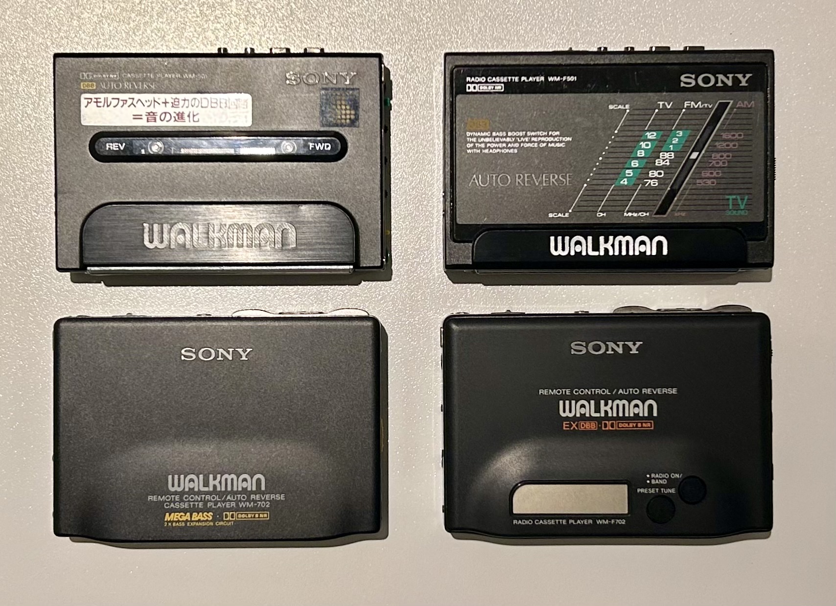 Which reminds me of Sony. Visually, the volume control of the Sharp is identical to the Sony walkmans from the WM-2 and its successors. Can you tell these 3 apart? They're Sony WM-20, Sony WM-101 and Sharp JC-7.