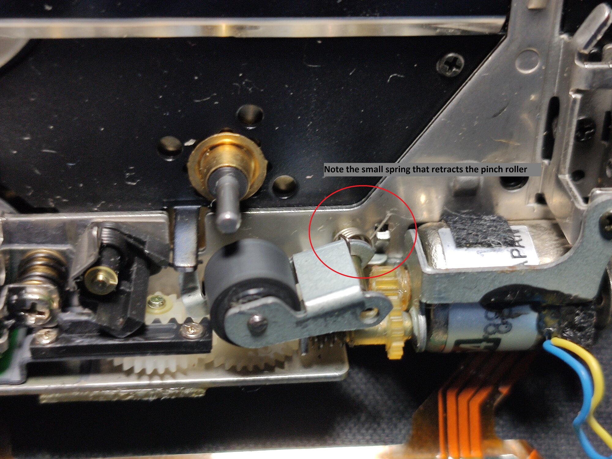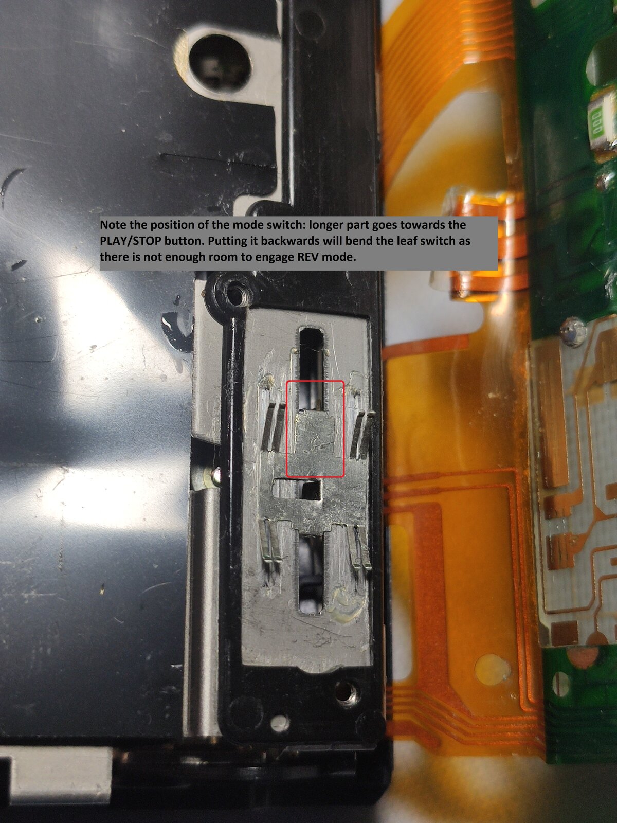 This is a step-by-step tutorial covering how to replace the pinch roller on the JVC full logic walkmans. While the basic principle for replacing those pinch rollers is the same for all in the series (JVC CQ-(F)7K/CQ-(F)5K, CQ-R7K, CQ-V9), the specific details only apply to the CX-(F)5K and CX-(F)7K. For the most part, I do not recommend replacing these rollers unless they have indentation marks as the process in pretty involved and there is a risk to produce more harm than good. Pinch rollers are 7 x 6 x 1.5mm (outer diameter x total height x pin diameter). These pinch rollers are pretty hard to find and the problem is you will need to replace the entire pinch roller as the rubber cannot be removed since the original hub has 2 large discs on both sides. What I found to be the best solution is buy the complete assembly from China and replace the rubber part with the one that Marian sells (it's the WM-702 type): https://fixyouraudio.com/product/sony-wm-702-pinch-roller-tire/ While the complete assemblies that I bought from China do work fine, the rubber is not of very good quality and some of them had a pretty large eccentricity, but the plastic hub is of good quality and designed so rubber can be removed from it. 1. You need to remove the cassette door cover. It's held with 5 screws and the auto-reverse switch. Note the switch does not need force to be removed, it should come out very easy. 2. You need to remove the radio scale together with its plastic backplate. It's held with 2 screws. Note there is a washer beneath the screw at the top, near the tuning potentiometer. 3. You need to remove the radio PCB (3 screws, one is different note the picture) and the mode leaf switch. Pay careful attention to the leaf switch as it's very fragile. 4. You need to remove the PCB backplate. First remove the spring, then remove the ear near the spring after which it can be slided out completely. 5. Remove the pinch roller cut washer and remove the roller assembly. Pay attention to the small spring and remove it. It's best to leave it on the walkman in order to avoid losing it. 6. Start filing the bottom rivotted part of the pin until it's flat with the rest of the assembly. At that point you can push it with a small punch or similar metal object. Be careful not to lose this pin as it is not of a standard type ! 7. Remove the old roller and replace it with the new one. Put the bin back and glue it where it was rivotted. Don't put to much glue as it can sip though and glue the roller itself. 8. Re-fit everything in the reverse order. 9. Put the unit in play and clean the new roller of any grease from your fingers with a cotton swab and IPA. NOTE: In pictures it is only shown the FWD pinch roller, but the process is similar on the REV one. On the CX-R7, the FWD roller had a plastic bracket on which the pin can be simply pressed out. However, the REV one is the same as the CX-5/7.